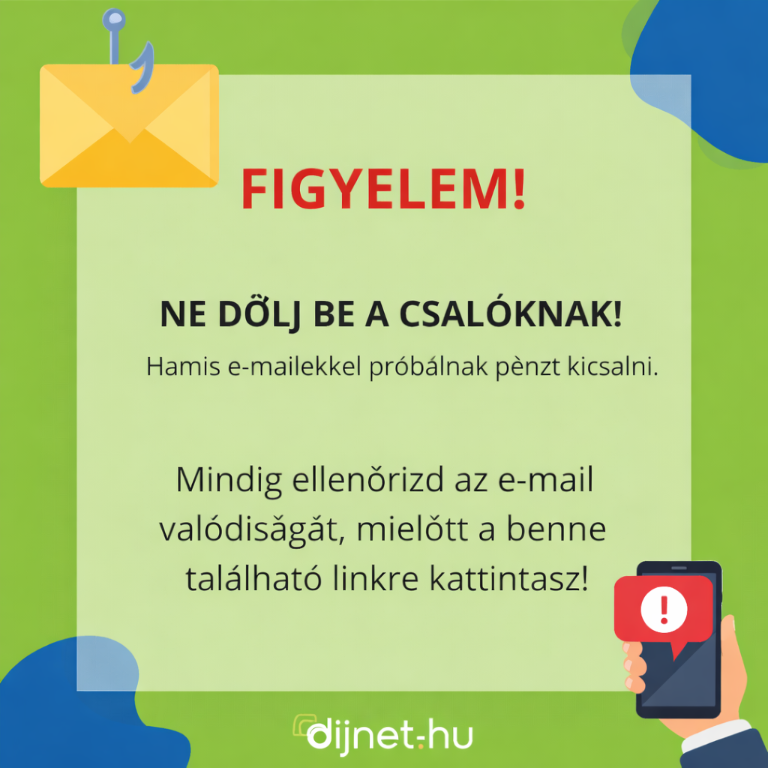 A legfontosabb figyelmeztető jel: a Díjnet tájékoztatása szerint a valódi, sikeres vagy sikertelen fizetésről szóló értesítések nem tartalmaznak olyan gombot, amellyel újra lehetne indítani a fizetést. Ha ilyen opció jelenik meg az e-mailben, az komoly gyanúra ad okot.